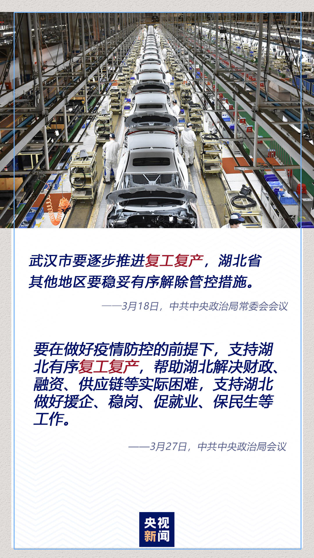 “这次疫情,短期内会给湖北经济社会发展带来阵痛,但不会影响经济稳中向好、长期向好的基本面。”3月10日,在武汉考察新冠肺炎疫情防控工作时,习近平明确表示,要在加强防控的前提下,采取差异化策略,适时启动分区分级、分类分时、有条件的复工复产。