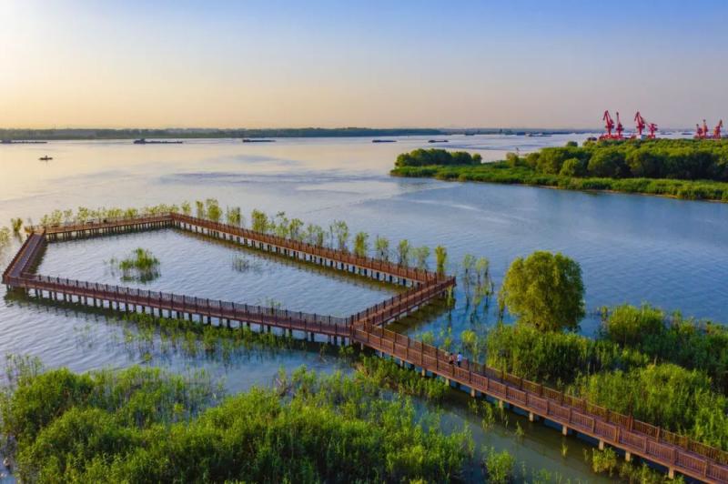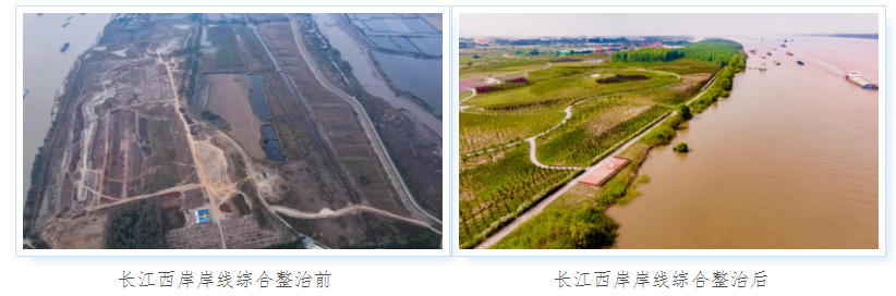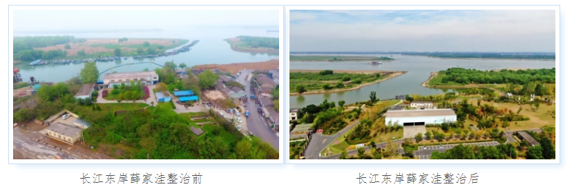 二是坚持流域治理,强化生态修复。强化问题点位整治,清理东岸薛家洼污染源,取缔“散乱污”企业、非法码头,拆解渔民生产生活用船223条,关闭畜禽养殖场,清理固废等,对96户棚户区居民整体搬迁;西岸金固港口共运出砂石42000吨,清运废钢7100吨,拆除活动板房3700平方米、水泥路面及停车场约280亩。统筹岸线综合整治,修复建设长江东岸滨江生态湿地公园2000亩、小九华山片区游园400亩和陈家圩段生态岸线7公里;强化西岸岸线生态修复,打造成长江西岸“一脉、三核、四区、十景”的23公里绿色景观带和“江北薛家洼”。