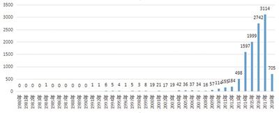 图为1980~2018年6月30日部分地区非法捕捞水产品案分布。