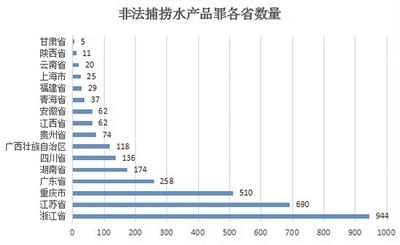 从地域上看,浙江、江苏、重庆等地区的非法捕捞水产品罪案件数量较多。这一方面说明水产养殖业在该地区农业产业布局中占有较大比重,另一方面也反映了这些地区重视利用刑事手段打击非法捕捞行为。