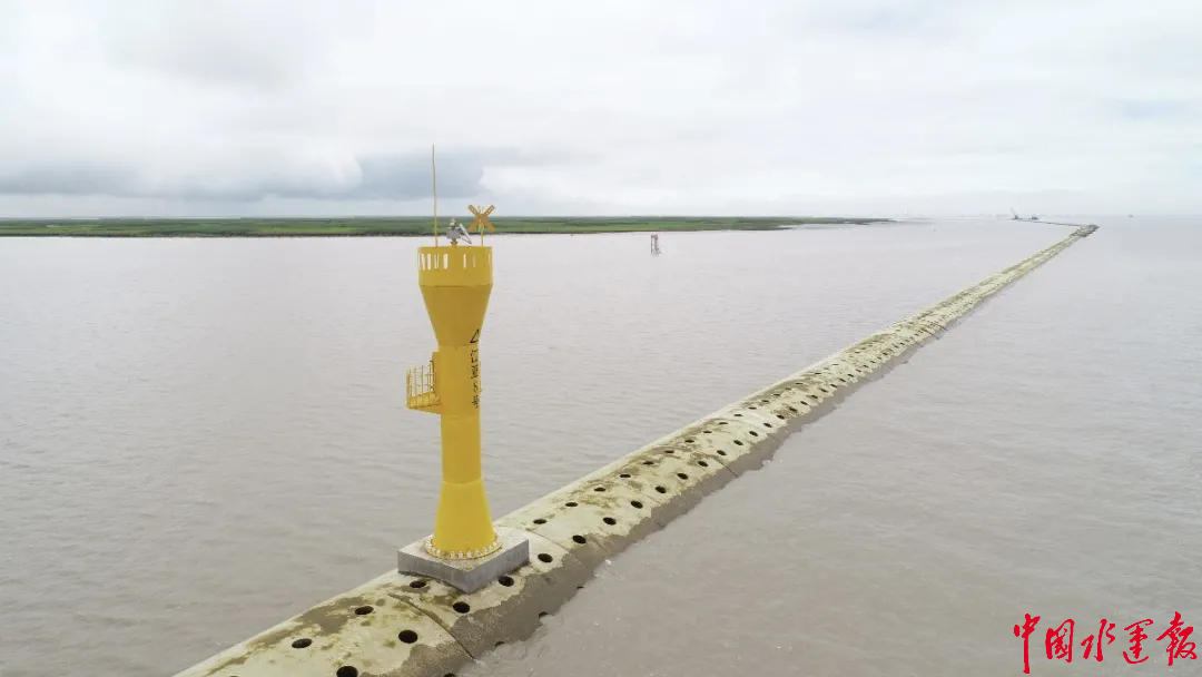 建成的长江口南槽航道治理一期工程半圆体导堤和灯桩
