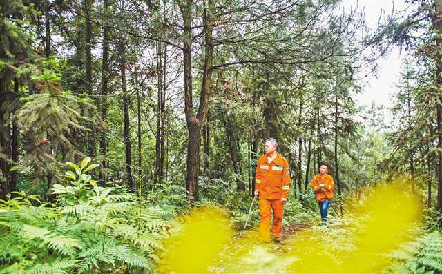 江北区五宝镇明月山,护林员正在巡山。(本报资料图片)记者齐岚森 摄