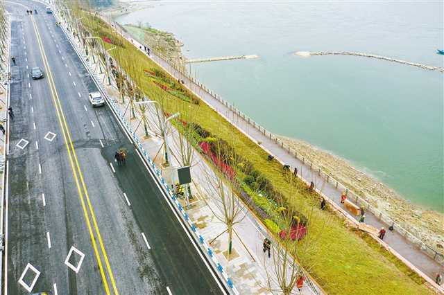 2021年12月30日,北碚滨江路(二期)正式通车,碧绿的江岸与嘉陵江水相映成趣。特约摄影 秦廷富 摄/视觉重庆