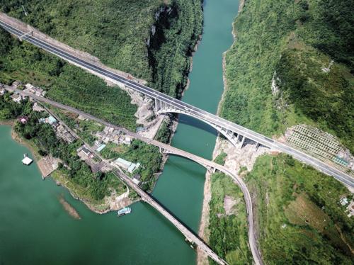 贵州织金至普定高速公路夜郎湖特大桥路段。