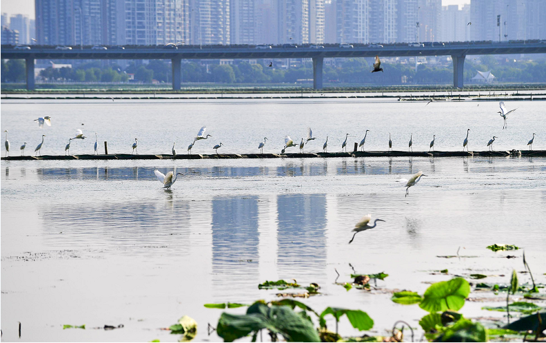 近年来,武汉严格湿地保护,推进园林绿化,并进行水生态修复、鸟类科学监测、护鸟爱鸟教育等工作,在百湖之城建起百鸟乐园。据统计,从2016年至今,武汉鸟类历史记录种类数从365种增加到415种,国家一级、二级重点保护野生鸟类从38种增加到46种。