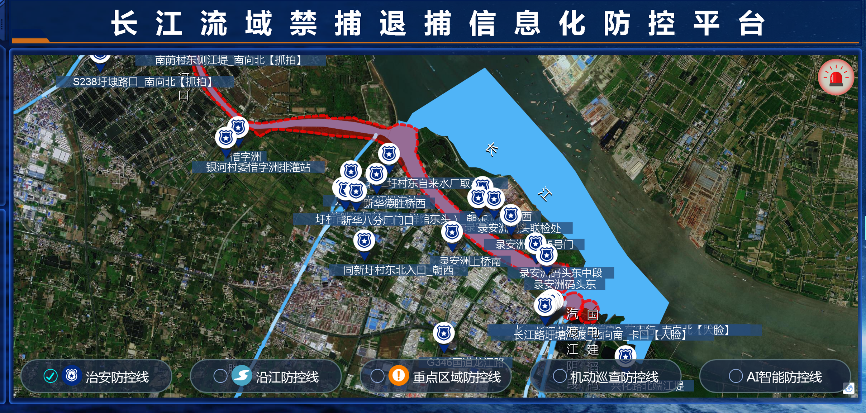 2021年1月1日起,长江流域重点水域全面实行10年禁捕。由于禁捕涉及地域广、持续时间长,尤其是沿江、水面等有些区域巡防难度较大,给执法部门带来不少困扰。为加强长江干流常州段水域的监管力度,长江禁捕退捕信息化防控平台应运而生。常州移动针对本市范围内16.6公里长江干流段和9.2公里录安洲沿线江堤、沿江区域以及23条抵江道路,部署了117套人车结构化摄像机、全景AR摄像机、红外线热成像摄像机、智能巡逻机器人等智能化监控设备。
