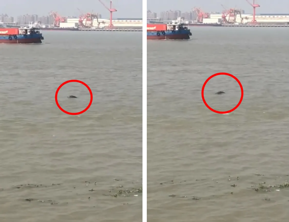 “快看,江面上有东西!”“好大的鱼!”“不是鱼,是‘江猪’!”10月30日11点47分,江阴市民吴先生拍摄到了江豚在江阴鹅鼻嘴公园听涛阁前的江水里。