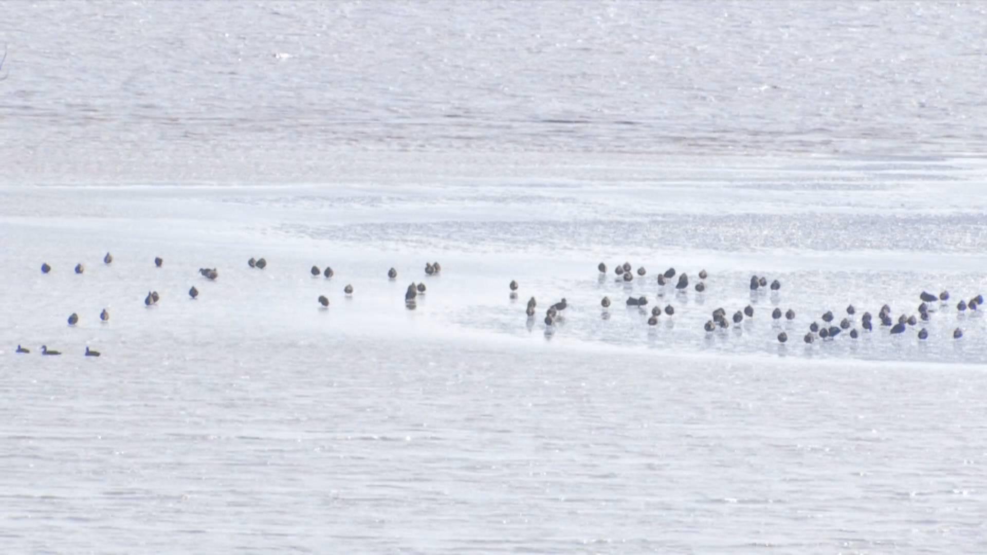 据介绍,这些野鸭以斑嘴鸭和绿头鸭为主,一般12月份左右来到江面戏水觅食,来年3月份就往北飞了。