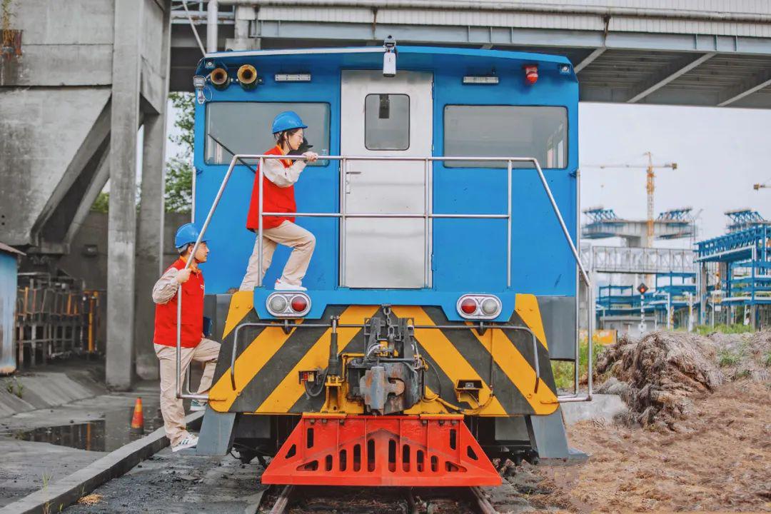 6月7日,江北海港枢纽经济区西坝港区,南京供电公司为码头引入了新型智能轨道机车。通讯员 高青 摄