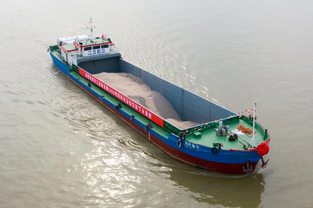 2月23日,由我国自主研制的载重3000吨级的电动货船在江心洲绿水街附近的码头下水启航,这是目前长江流域吨位最大的电动货船。