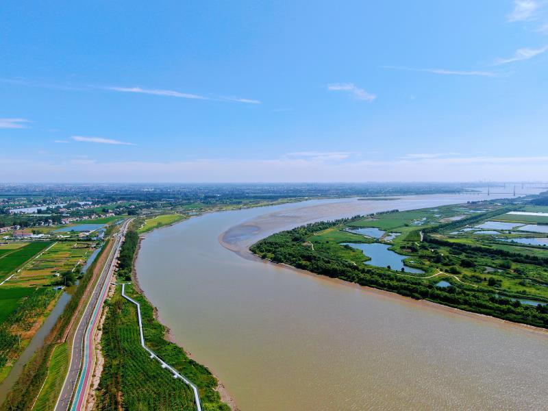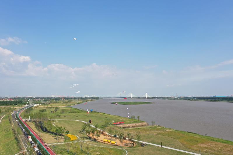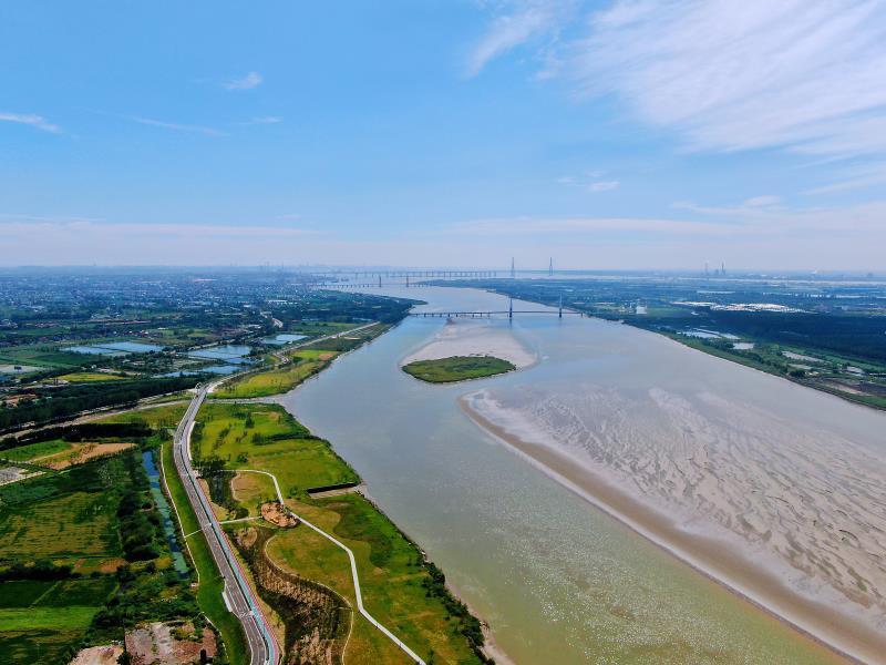 万里长江在江苏省如皋市南部孕育出一座美丽小岛——长青沙。多年来,如皋长江镇通过植树造林、生态廊道建设,精心打造夹江两岸生态景观。高空俯瞰下,长江碧波浩荡,两岸树木葱茏,好一幅水清岸绿的生态画卷!