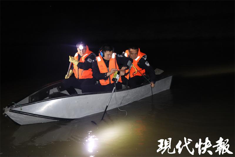 南京水警救捞队夜间打捞物证