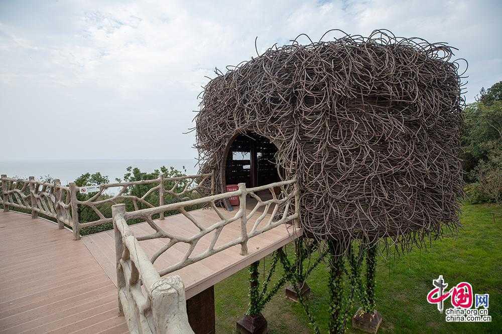 为了最大限度保持原生态,吴城镇采用仿生学原理,建造了鸟巢、鸟蛋、梧桐树等造型观鸟点。中国网记者 伦晓璇 摄