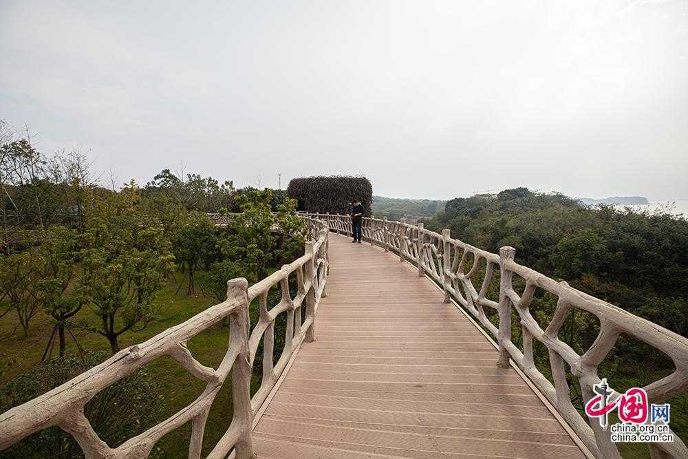 为了最大限度保持原生态,吴城镇就地取材,循环利用旧砖、旧瓦等建筑材料,积极采用竹、木等绿色建材,减少环境破坏与污染,图为长约5公里、宽3米的竹制栈道。中国网记者 伦晓璇 摄