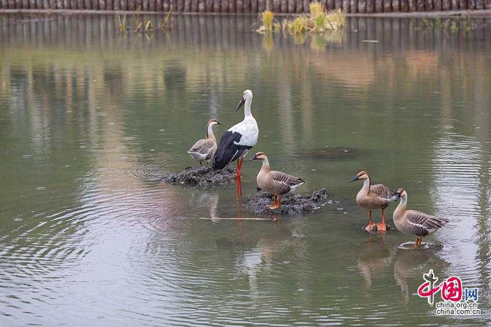 图为在吴城保护管理站栖息的候鸟。中国网记者 伦晓璇 摄