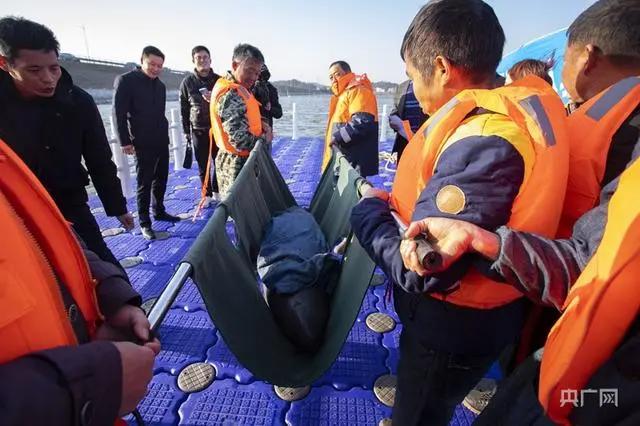 今年2月15日,湖口南北港,工作人员将完成体检的长江江豚放回水中(央广网发 郭英 摄)