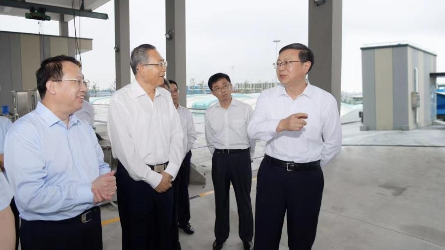 位于浦东新区高东镇的竹园污水处理厂四期工程,是践行长江大保护、落实中央生态环境保护督察和长江警示片突出问题整改要求的重要举措,完全建成后将大幅提高中心城区污水处理能力。陈吉宁、龚正和李锦斌、任正晓等现场察看工程规划、建设进展及处理能力,了解全市污水处理设施规划分布情况,听取长江经济带环境突出问题整改进展,就提高全市污水处理能力、解决污水溢流直排问题等与相关负责同志深入交流。陈吉宁说,要强化目标导向、问题导向,全面对标对表党中央关于推动长江经济带发展的战略部署,聚焦裉节问题,加大工作力度,以更高站位、更强担当、更实举措抓好突出生态环境问题整改,确保完成整改任务,巩固提升整改成效。要着眼全市大局,整体谋划、系统推进,加快完善设施布局、充分挖掘潜力、增强运行效能,切实提升全市污水协同处理能力。牢牢把握数字化、绿色化转型机遇,依托“一网统管”平台,深化一体化运行调度管理,更加科学精准解决污水溢流等问题,为建设人与自然和谐共生的美丽家园提供有力支撑。