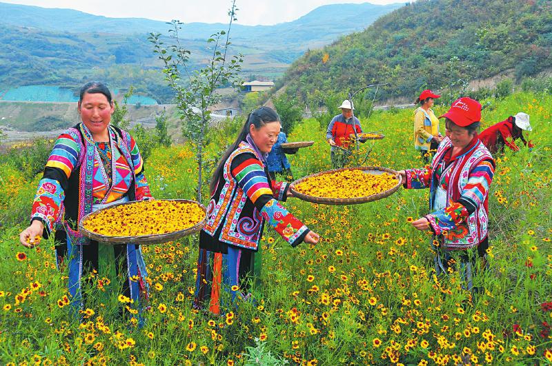 九寨沟县群众在采摘高山雪菊。(九寨沟县委宣传部供图)