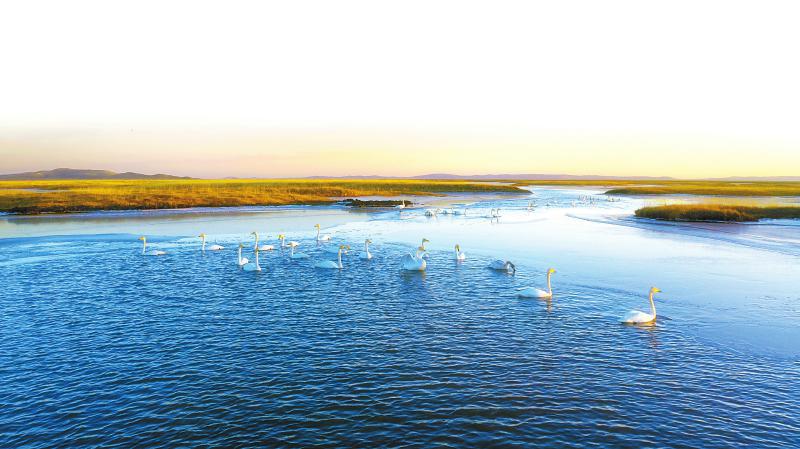 若尔盖草原湿地的大天鹅。(若尔盖县委宣传部供图)