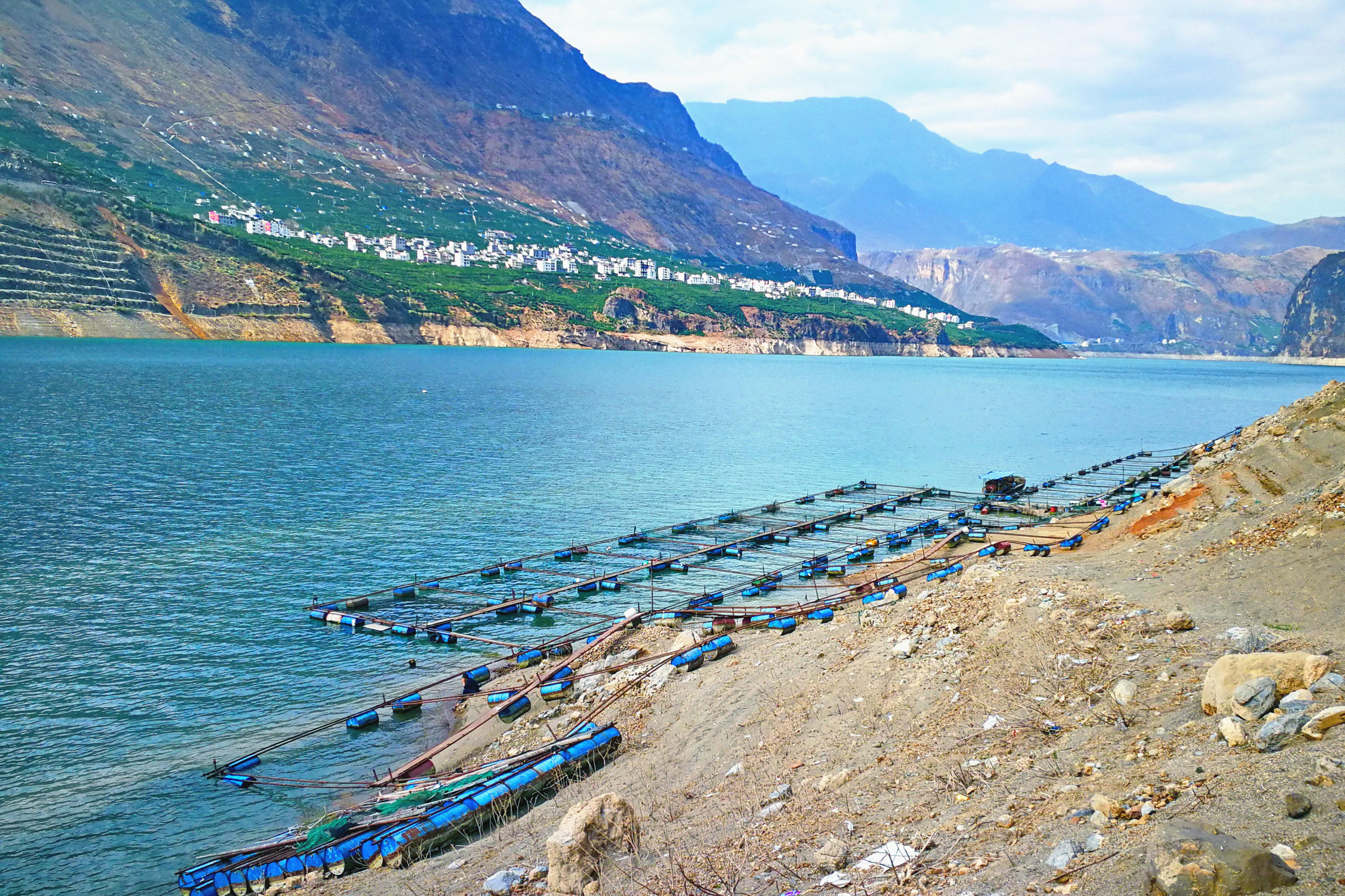 金沙江上的养殖网箱