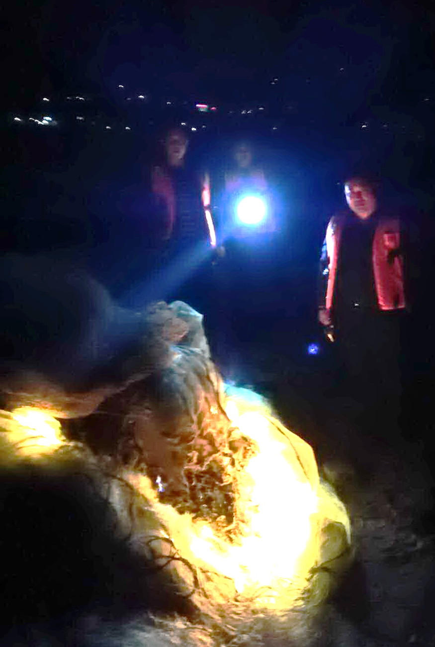 执法人员夜间查获非法网具
