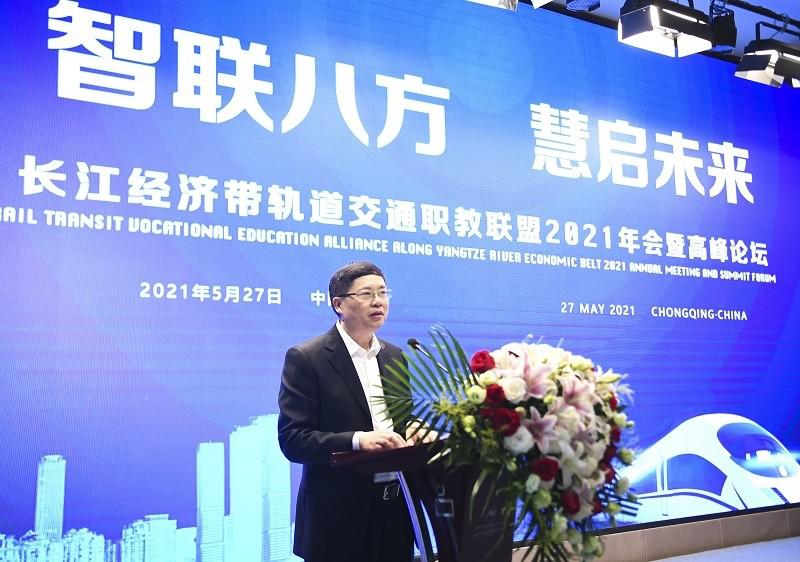 重庆铁路运输技师学院校长肖贵斌在致辞中表示,2019年5月,长江经济带轨道交通职教联盟在45家成员单位的鼎力支持下,应势而生,顺利组建。两年来,联盟成员本着“资源共享、优势互补、协同创新、合作共赢”的发展原则,充分发挥联盟成员单位的特色和优势,在促进长江经济带及周边地区轨道交通职业教育改革发展,提供高技术技能人才支撑等方面做出了不懈的努力。今年,学校将完成办学层次的提升,并以此为契机为联盟未来发展聚集更多更优质的资源,促进长江经济带轨道交通行业企业更快更好发展。