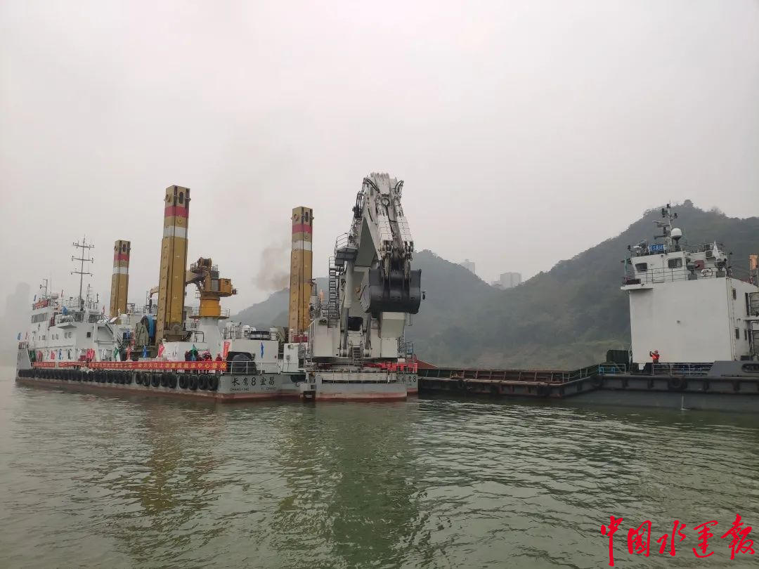 12月28日,长江上游朝天门至涪陵河段航道整治工程(以下简称“朝涪段工程”)草鞋碛、洛碛滩段筑坝工程现场,施工人员有序进行船舶定位,开始水上抛石作业,这意味着备受社会关注的朝涪段工程正式开工。
