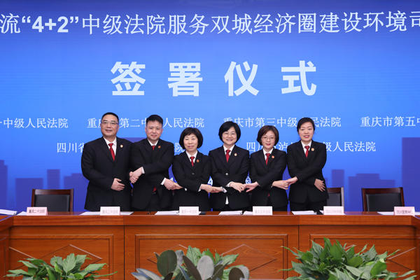 当天上午,四川泸州中院、宜宾中院和重庆一、二、三、五中院共同签署了《成渝地区长江干流“4+2”中级法院服务双城经济圈建设环境司法协作框架协议》,拟建立跨区域环资司法日常联络、跨区域环资案件诉讼服务、跨区域环资案件调研交流、跨区域环资案件执行合作、跨区域“司法+行政”生态环境资源协同治理、跨区域环资人才共享、跨区域环资信息互通、跨区域环境司法联合宣传等八项合作机制,形成环境资源司法诉讼服务“同城标准”、执法办案“同城效应”,切实为唱好成渝“双城记”、建好“经济圈”以及长江上游绿色发展,作出应有贡献。