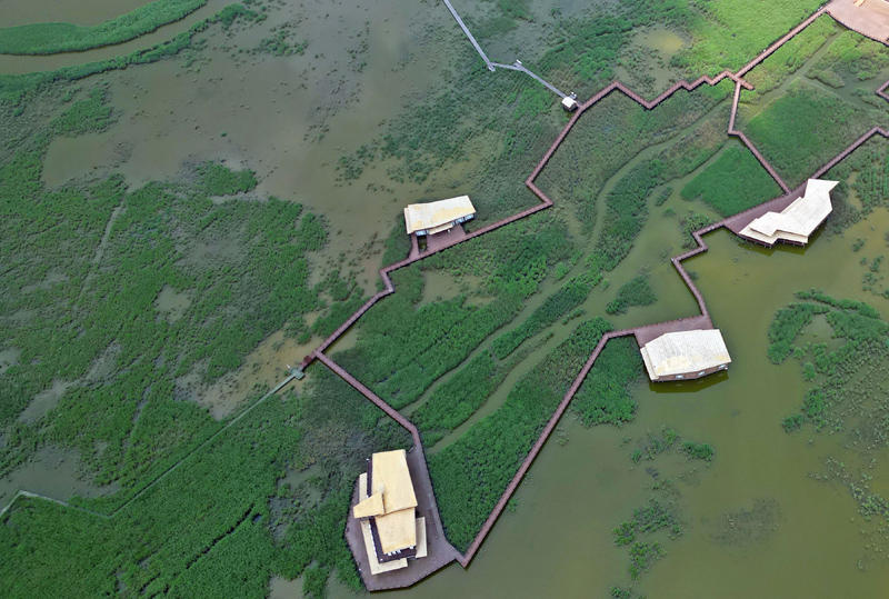 这是2023年6月14日拍摄的上海崇明东滩鸟类国家级自然保护区一景(无人机照片)。新华社记者 刘颖 摄